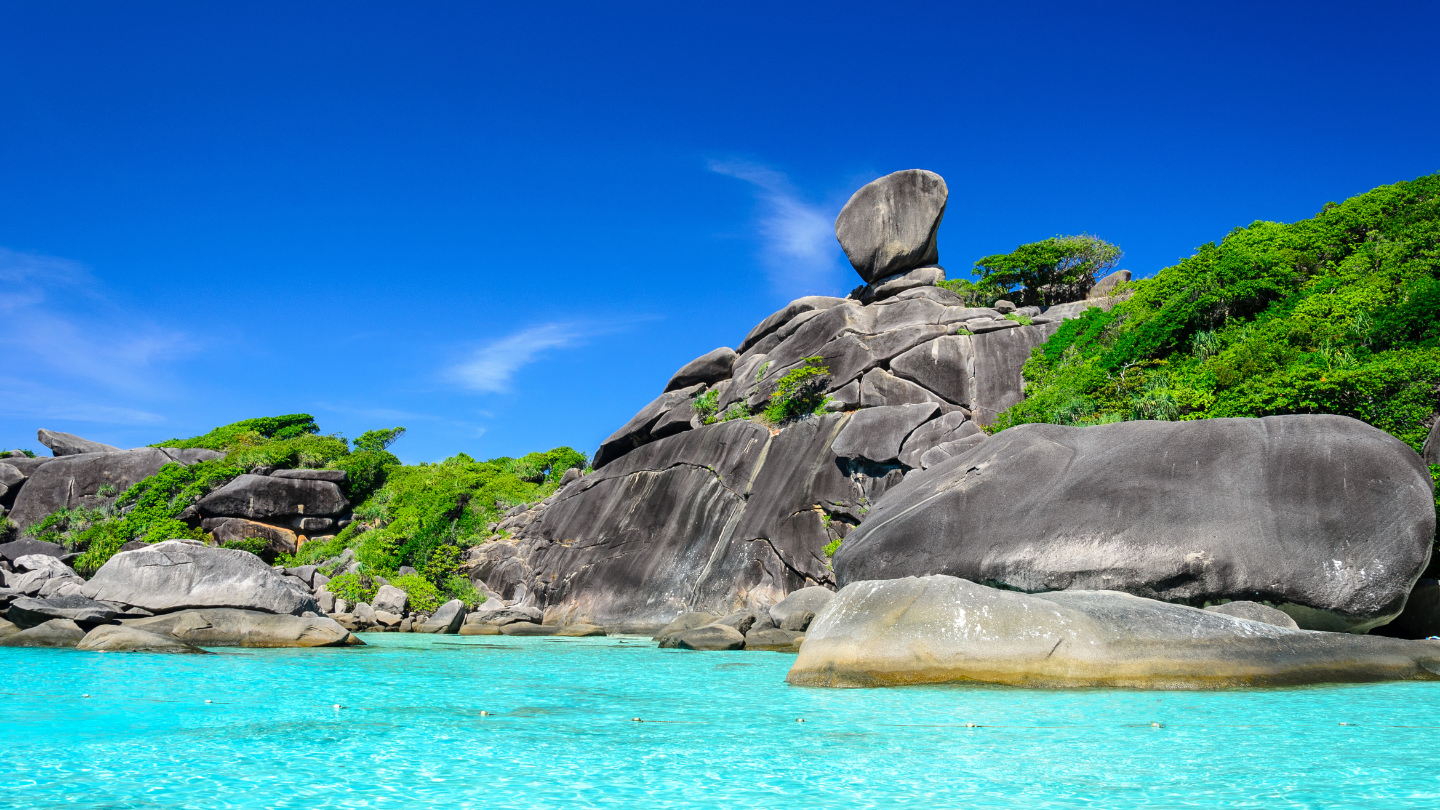 สัมผัสน้ำทะเลแสนสวยและเยือนแลนด์มาร์คสำคัญของสิมิลัน (เกาะ 8) “หินเรือใบ” สัญลักษณ์แห่งสิมิลัน ที่อยู่บนยอดเขาแหลมหินบนอ่าวเกือกของเกาะ 8 นอกจากความงดงามใต้ท้องทะเล บนยอดเขายังมีจุดชมวิวที่สามารถมองเห็นทิวทัศน์อันสวยงาม
